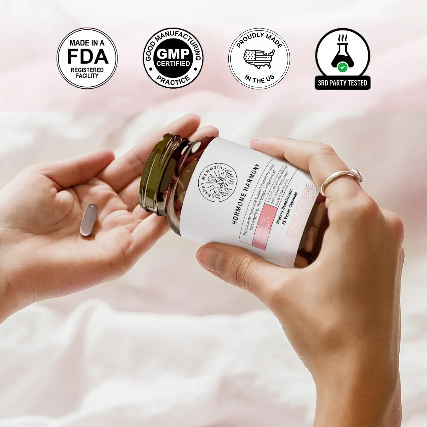Hormone Harmony is produced in small batches to maintain ultra high quality levels in a TGA Certified facility in Australia.