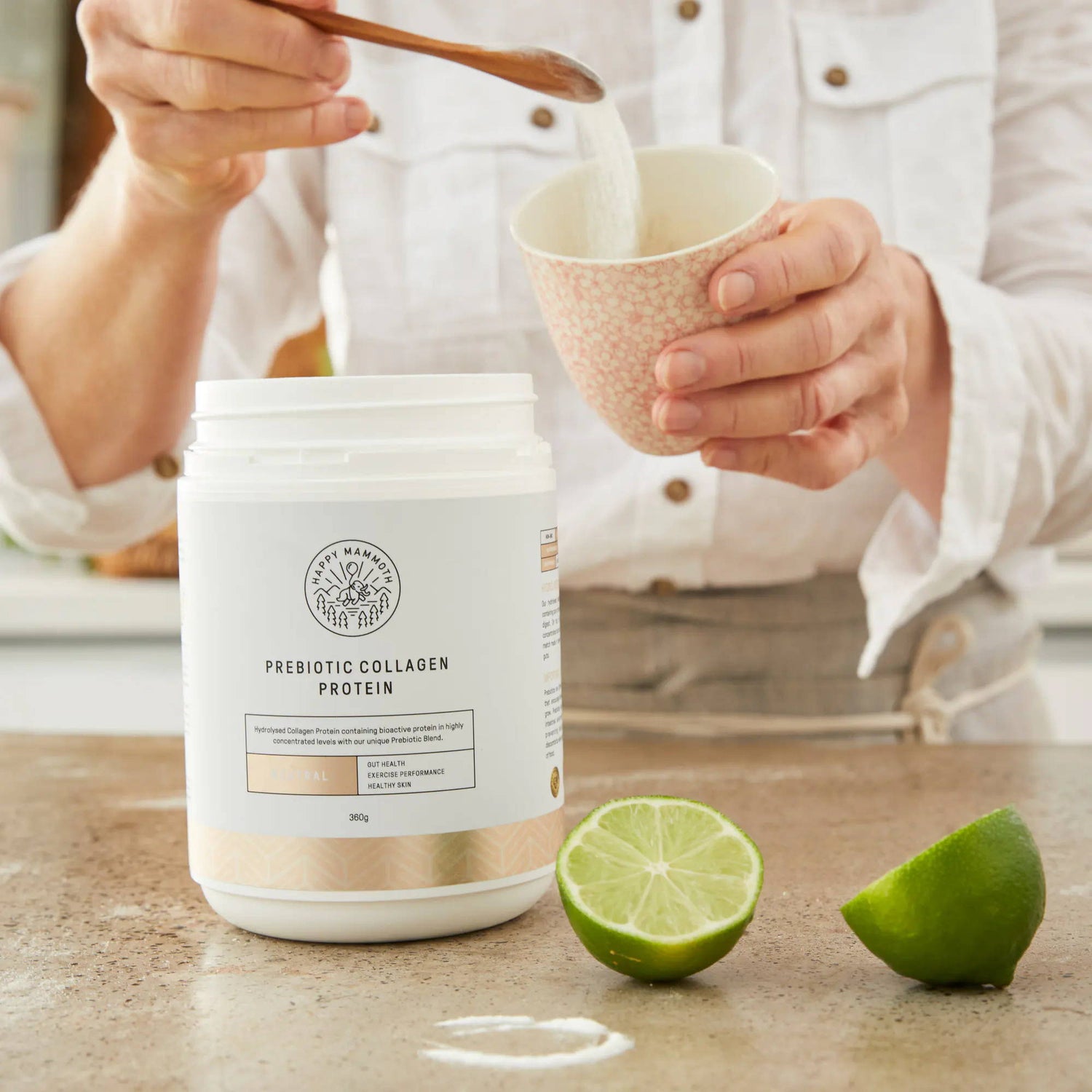 Prebiotic Collagen Protein comes in 3 unique flavours, natural vanilla bean, salted caramel and neutral (unflavoured). The flavours aren't too sweet, so they blend perfectly with any food or drink without altering their flavour. This makes it good enough to consume in a glass of plain water, with smoothies, topped on breakfast, or even mixed with yoghurt.